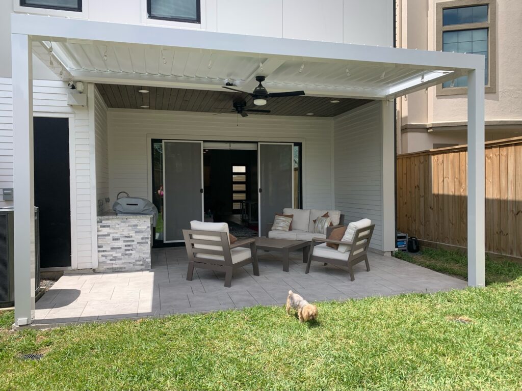 Needed extra usable space for patio area & also wanted to let light in so we gave them an adjustable louvered roof system