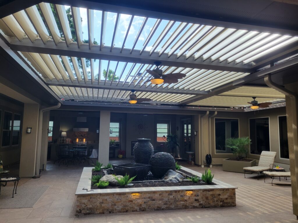 Wanted to enclose their Atrium while still keeping the natural light. The Equinox made for a great solution opening the Louvers for sunlight and closing them for Shade and Rain making it a more usable space.