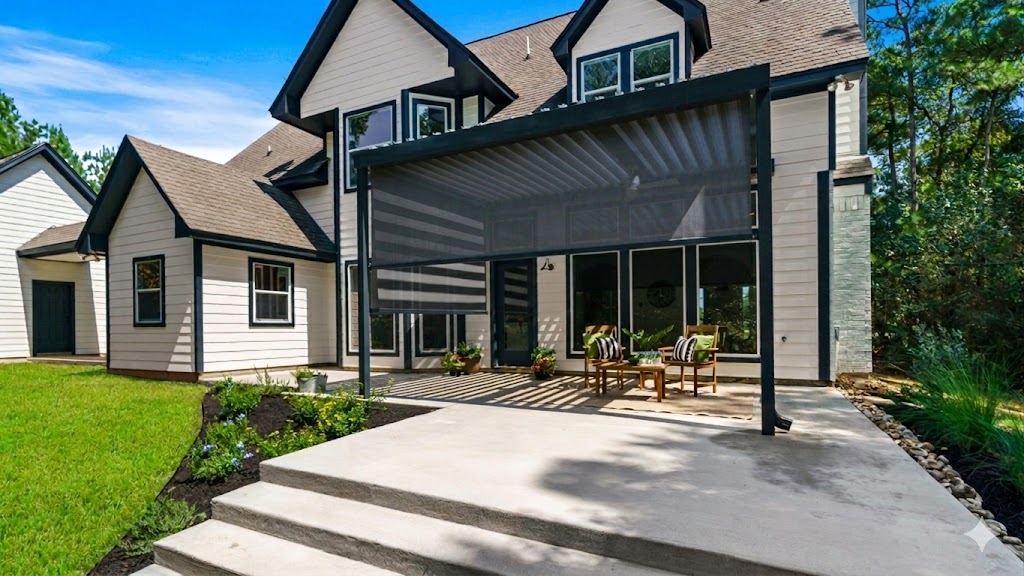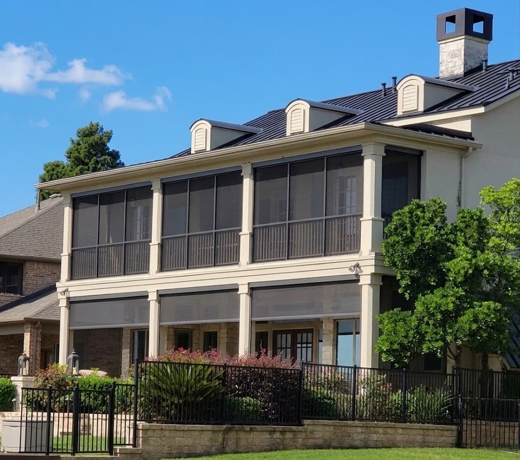 Motorized screens adjust at the touch of a button to control the amount of sun coming into your patio. Many degrees of sun protection and several colors to choose from.