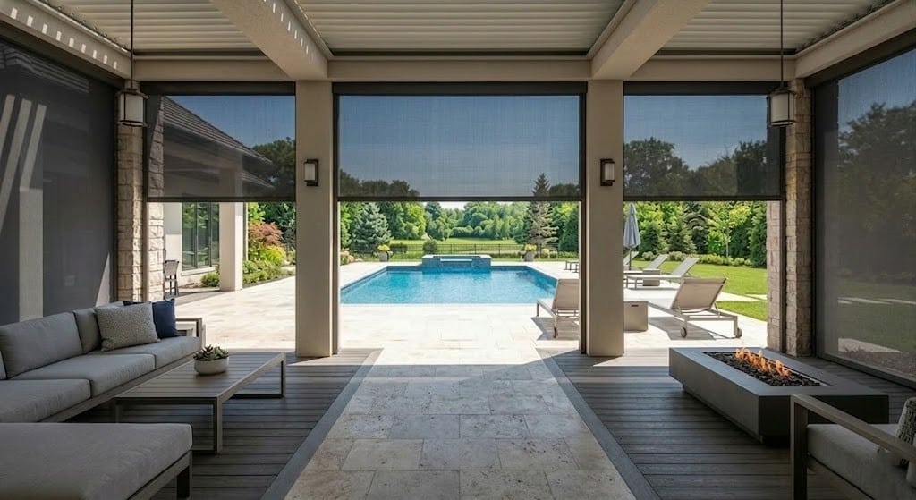 Motorized Screens to block the sun and wind